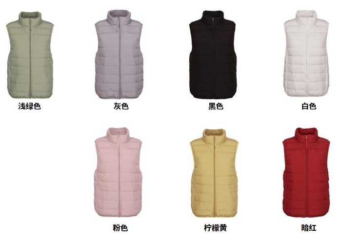 无缝一体女立领羽绒马甲
